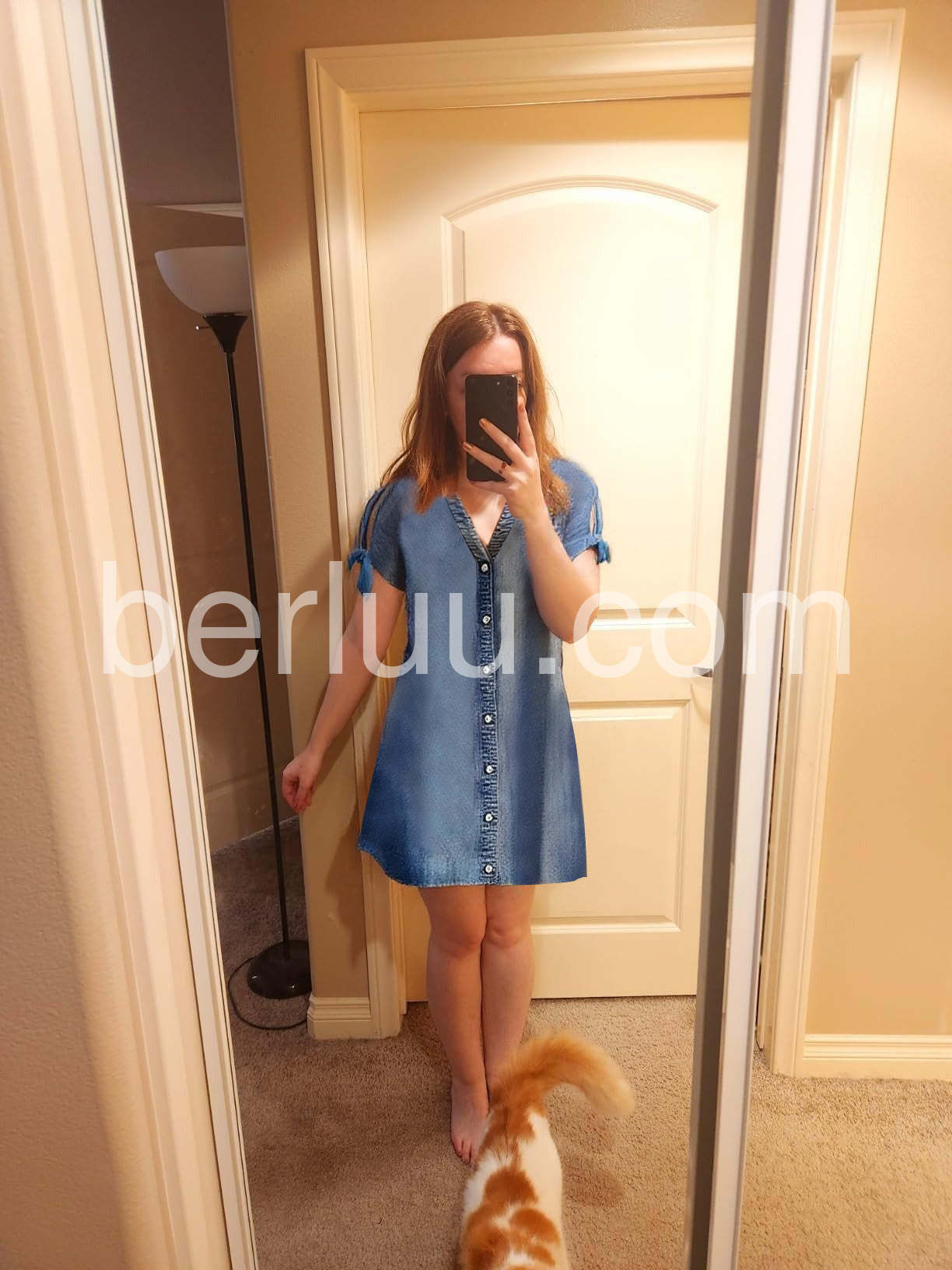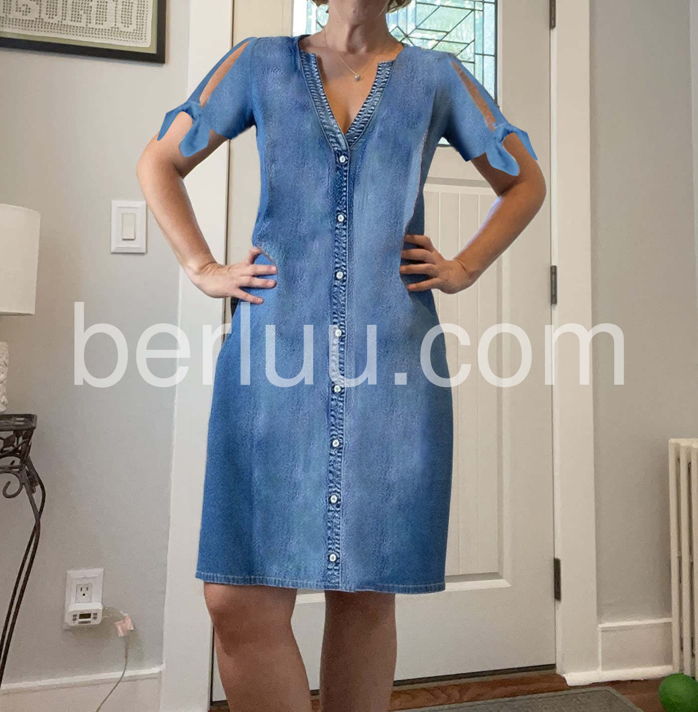 Chambray V-Neck Button Front Split Sleeve Mini Dress