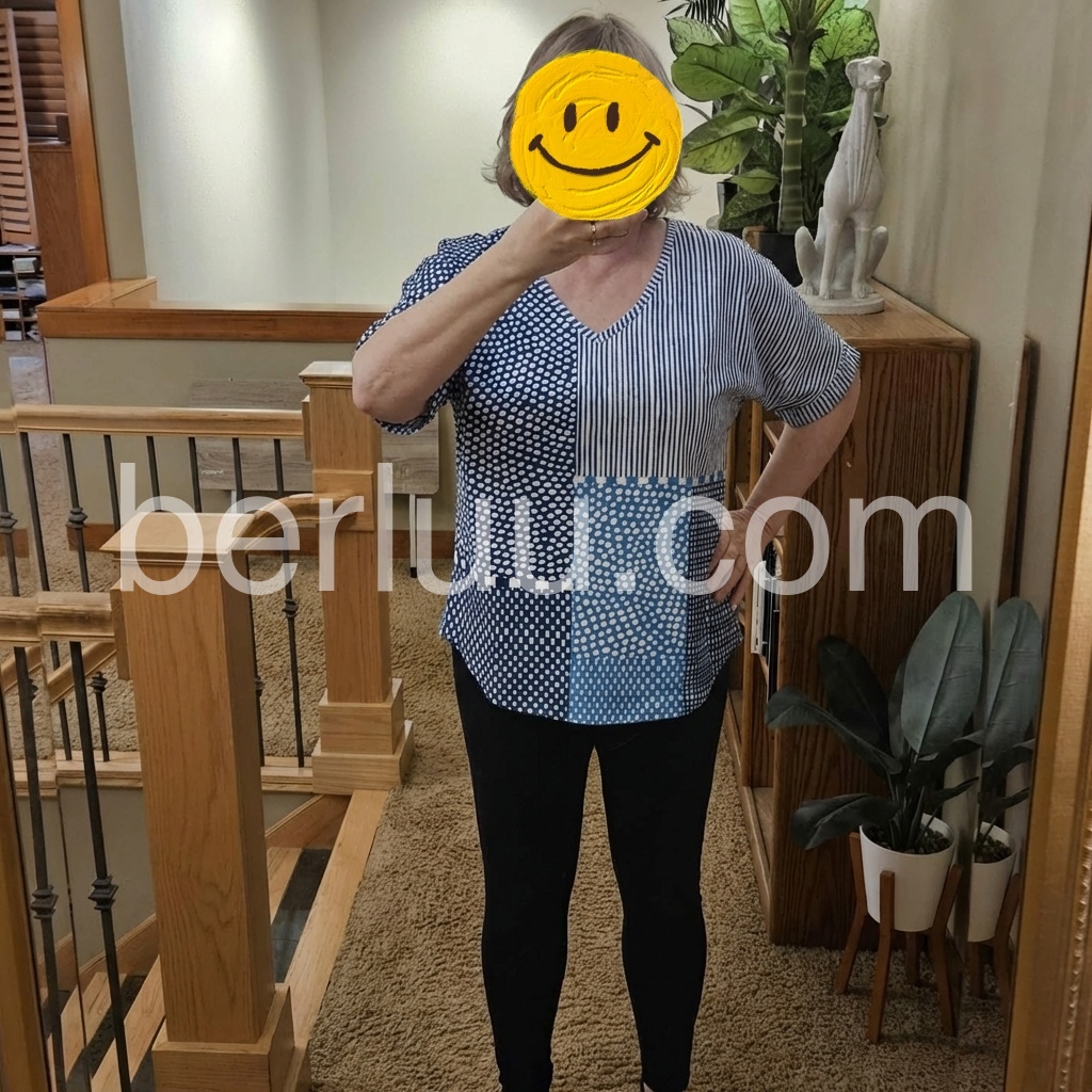 This blouse was created to solve the “I want something unique but not too loud” dilemma. The mix of polka dots, stripes, and geometric prints creates a patchwork effect that feels modern and playful.