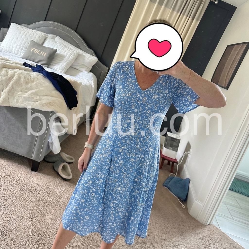 Designed to fix the "too tight or too baggy" dress pain point, this dress features a V-neck that flatters the bust, and flare sleeves that hide arm fat. The flowy A-line skirt skims over hips and thighs.