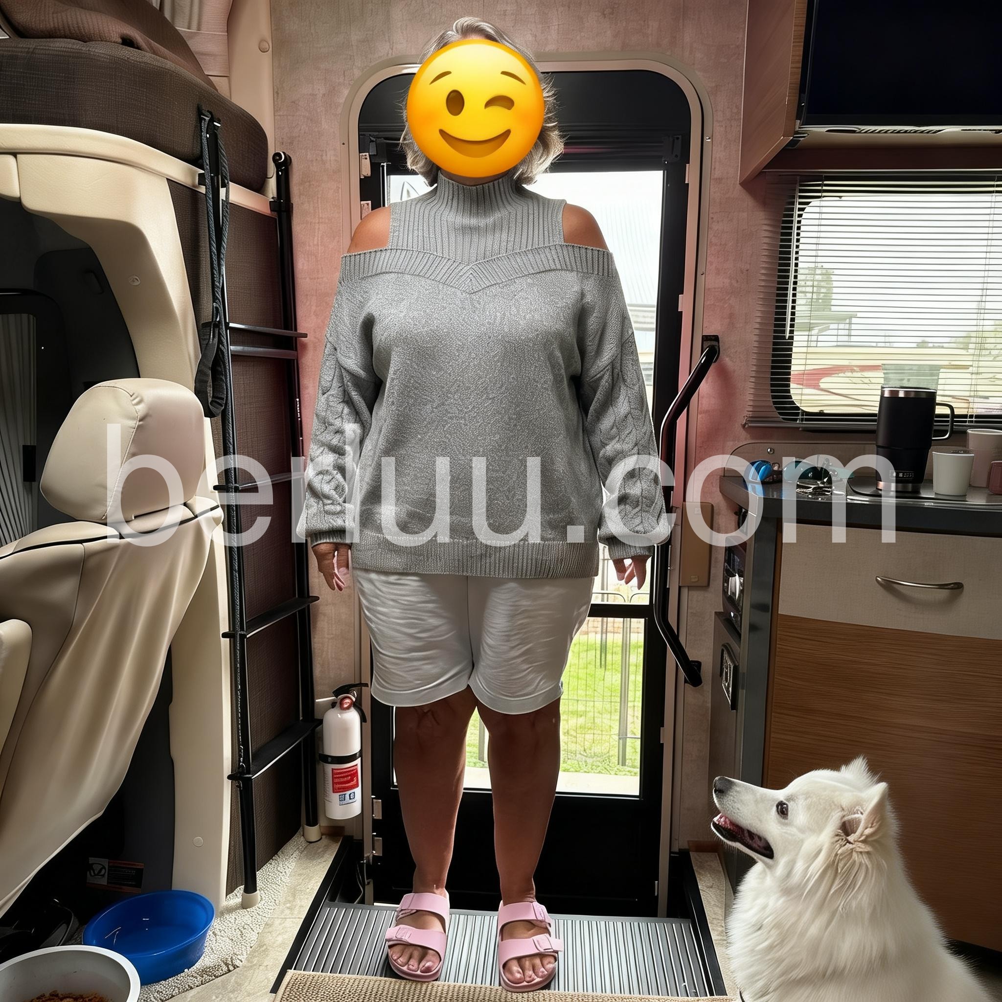 Gray Cold Shoulder Mock Neck Cable Knit Sweater