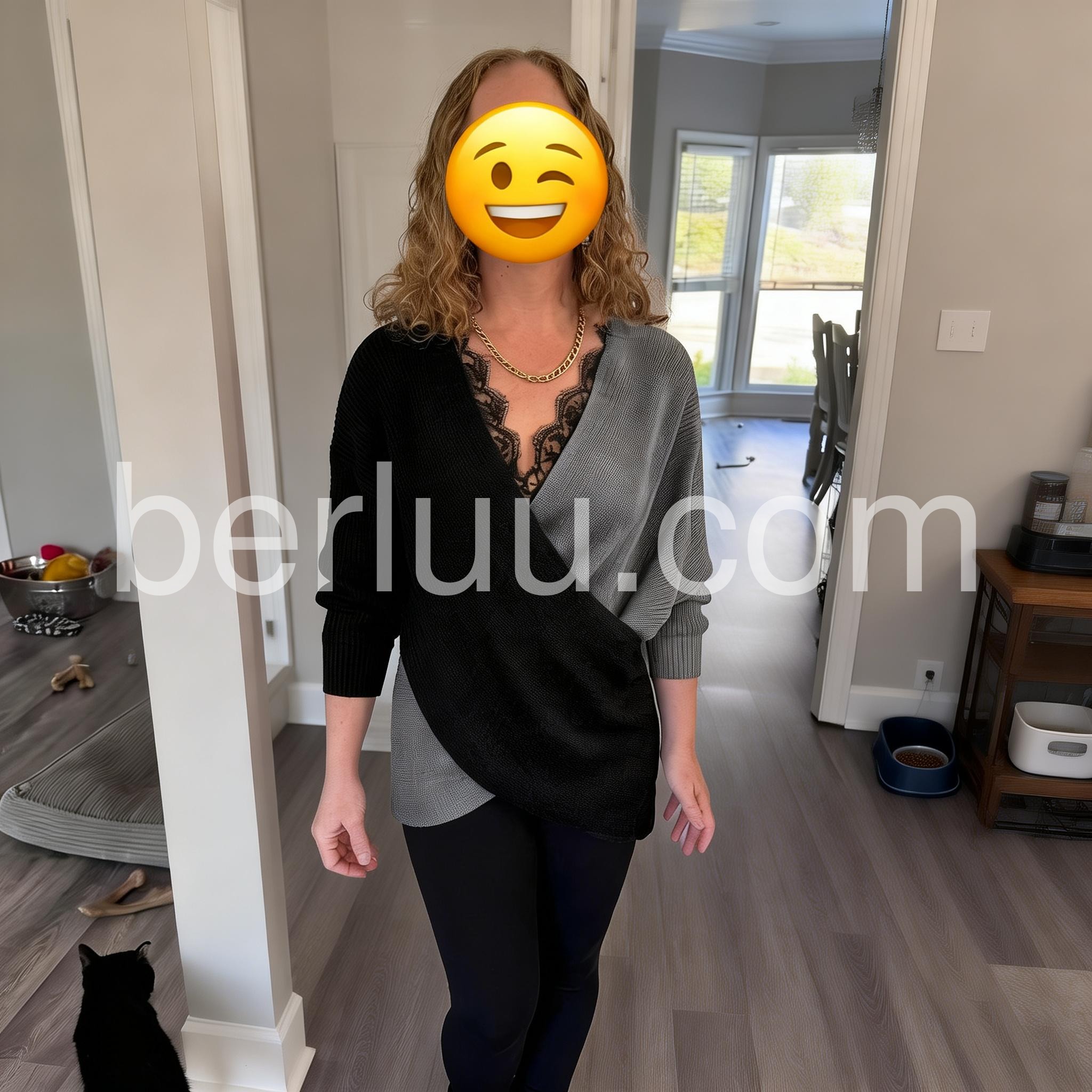 Indulge in this ultra-luxurious sweater, perfect for slightly cooler nights and days! This cozy knitted sweater features a black and gray side that gives way to a plunging v-neckline, along with billowy fitted sleeves for a chic look that is trendy and elegant. Wear this below the waist sweater with your favorite layering necklaces, jeans, skirt, tall boots, heels, or flats.