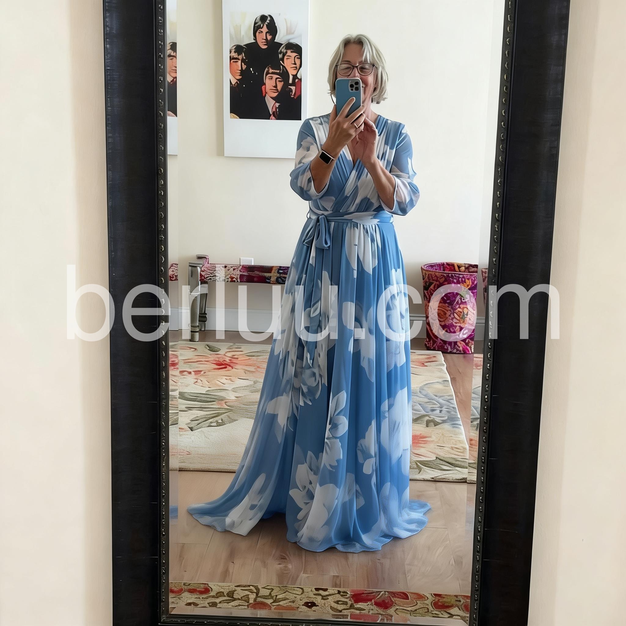 The Youthful Blue V-Neck Maxi Dress is a versatile and stylish addition to any wardrobe. Made from high-quality materials, this dress offers both comfort and durability. Its flattering v-neck design and flowing maxi length make it perfect for any occasion. Look and feel your best with this must-have dress.