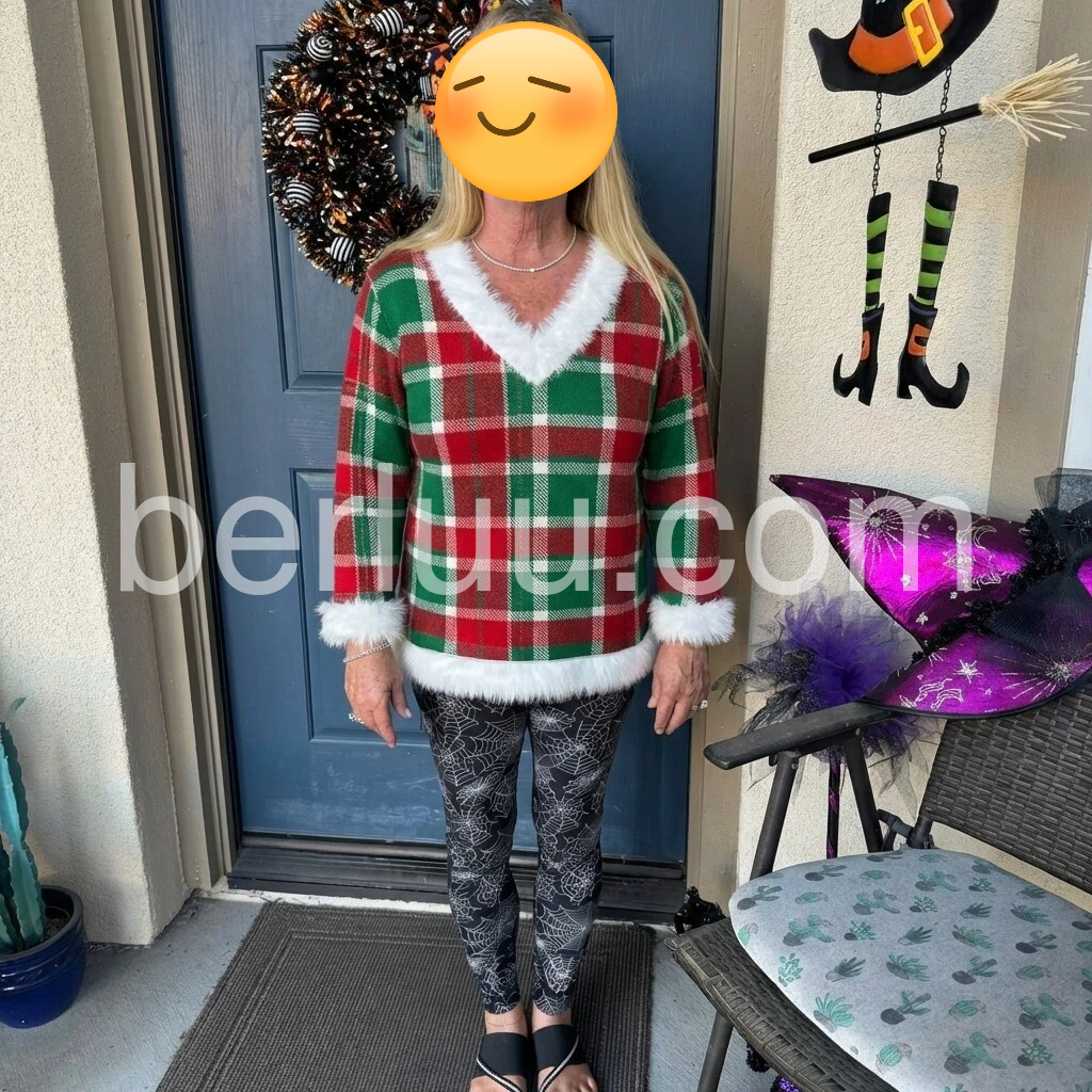 Celebrate the season in style with this Festive Green Plaid Christmas Top, featuring a classic plaid pattern enhanced by a luxurious faux fur trim. Crafted for both comfort and festive appeal, this top provides a cozy fit perfect for holiday gatherings. Its timeless design pairs effortlessly with your favorite winter accessories, making it an expert choice for those seeking understated elegance with seasonal charm.