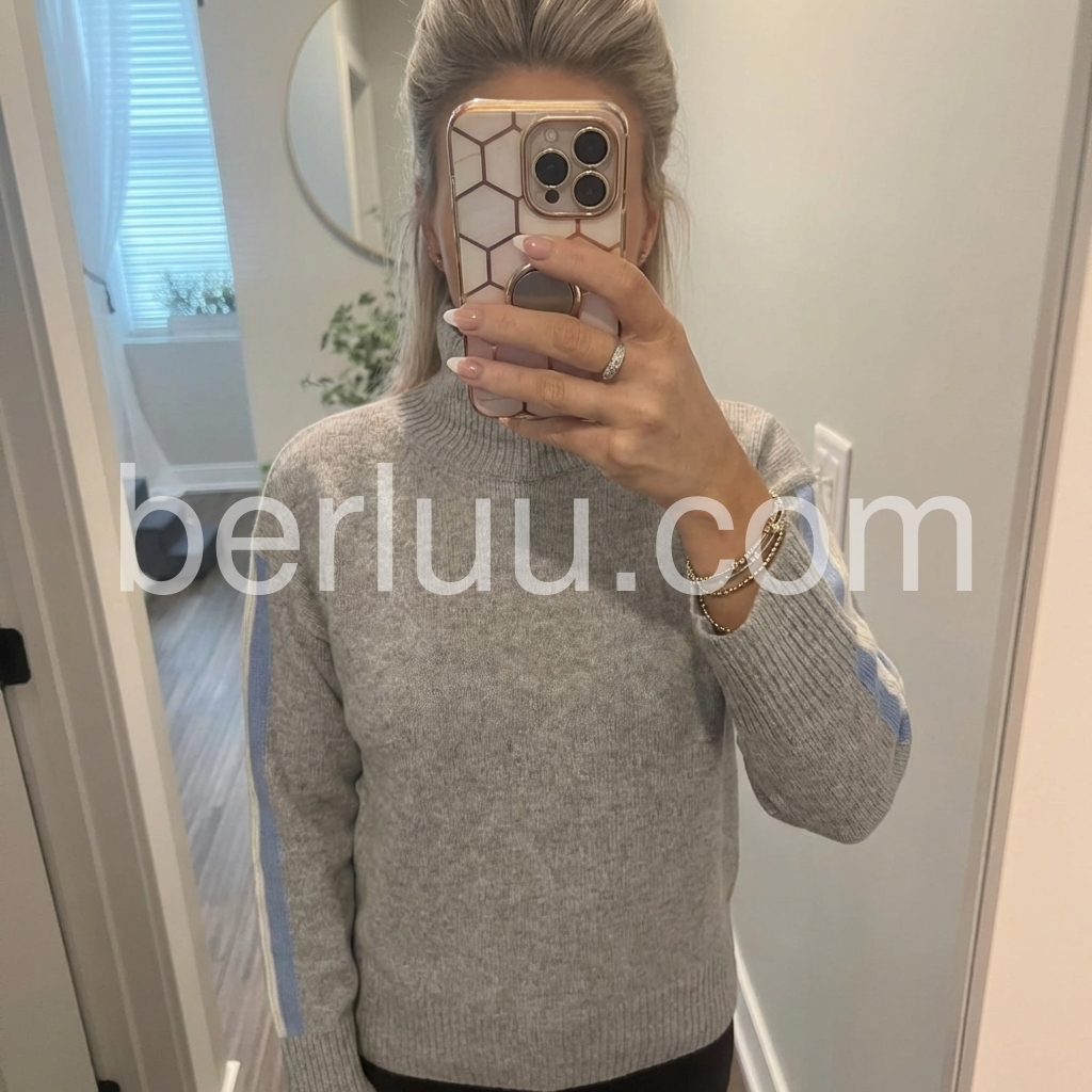 Popular Grey Plain High Neck Sweater