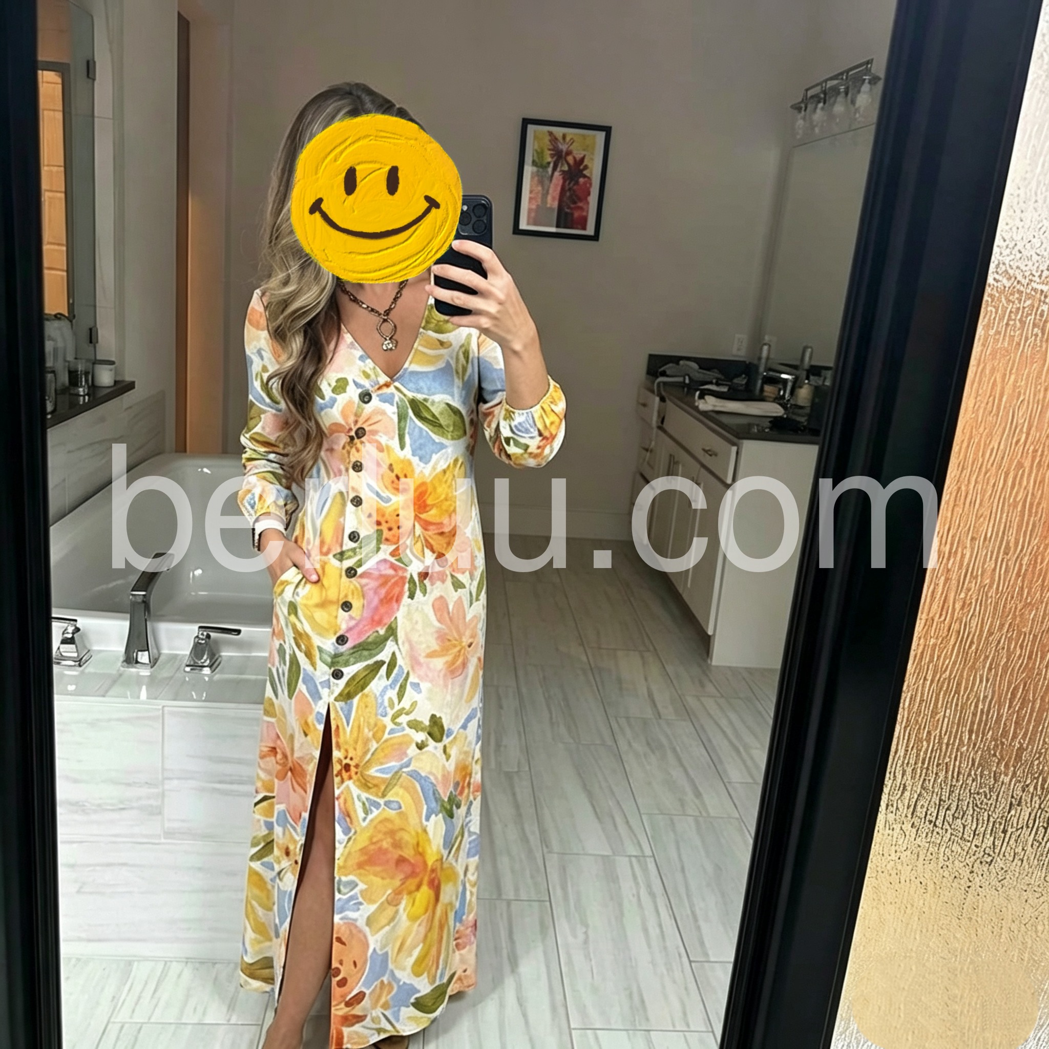 This dress is basically a walking watercolor painting! The dreamy, hand-painted floral print in soft pastels is pure boho-chic magic.