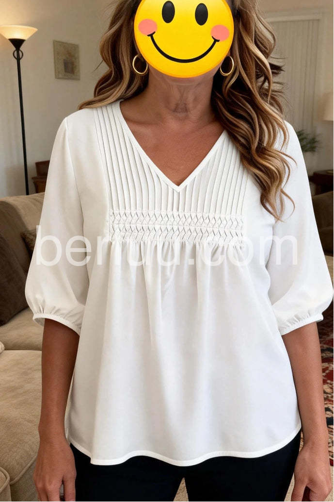 Classic White Plain V-Neck Top