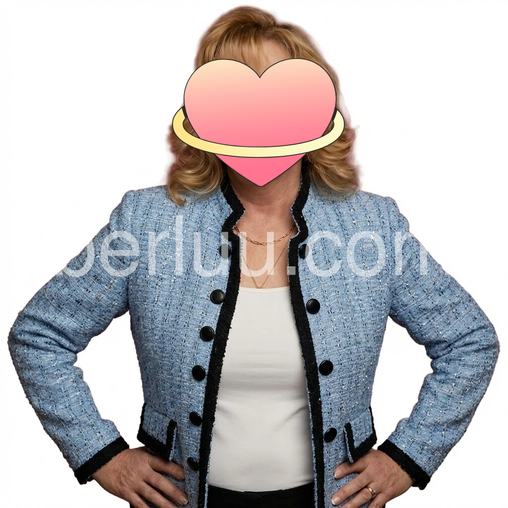 This blue tweed blazer features a refined black trim and a classic double-button closure, offering a sharp, tailored fit. Its textured fabric adds depth and sophistication, making it ideal for both professional settings and stylish casual wear. Designed to elevate your wardrobe with timeless elegance and structured silhouette.