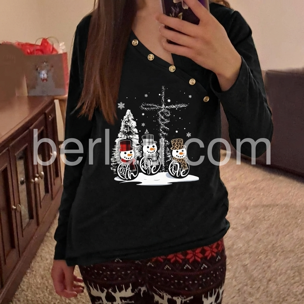 Three Snowmen Cross Asymmetrical Long Sleeve Top