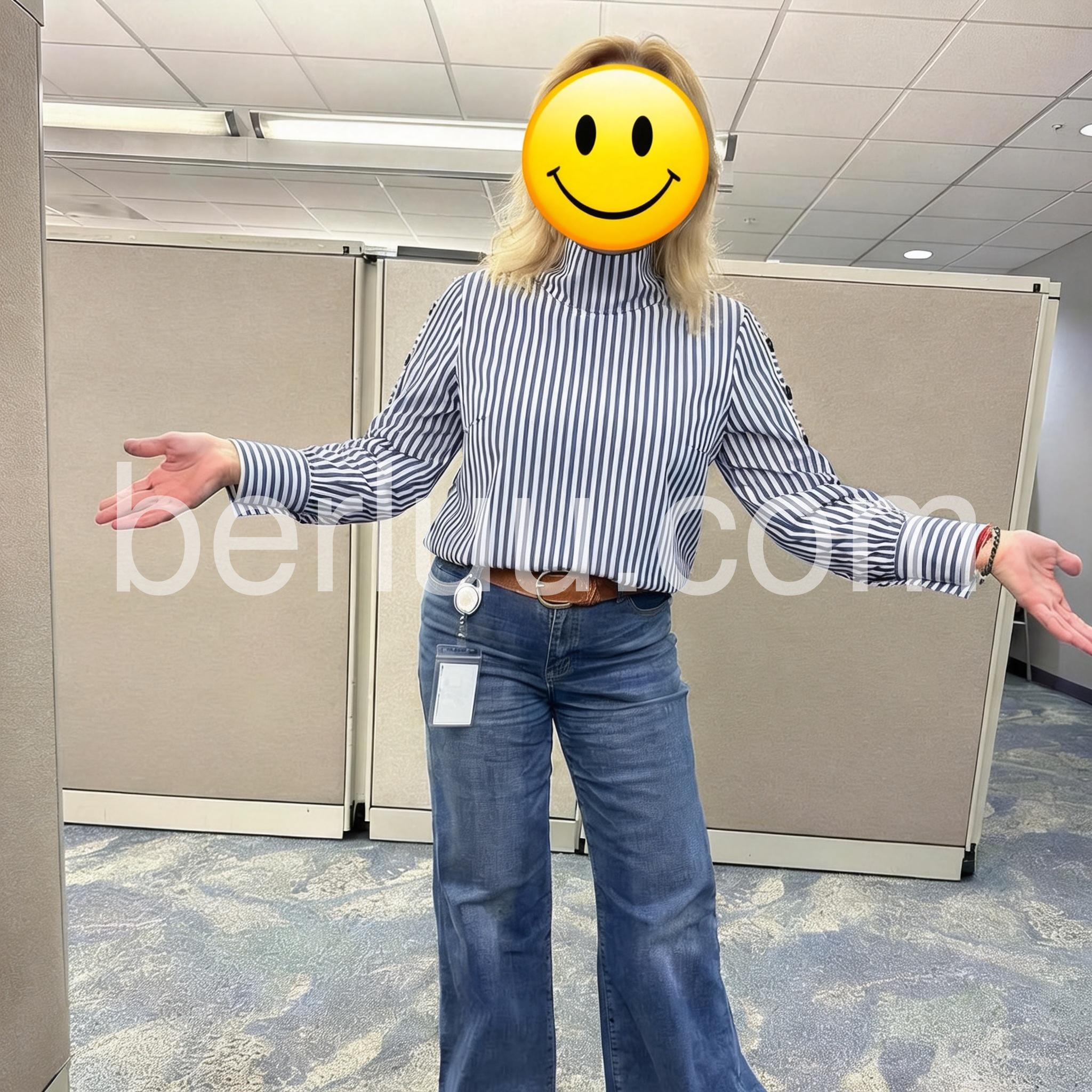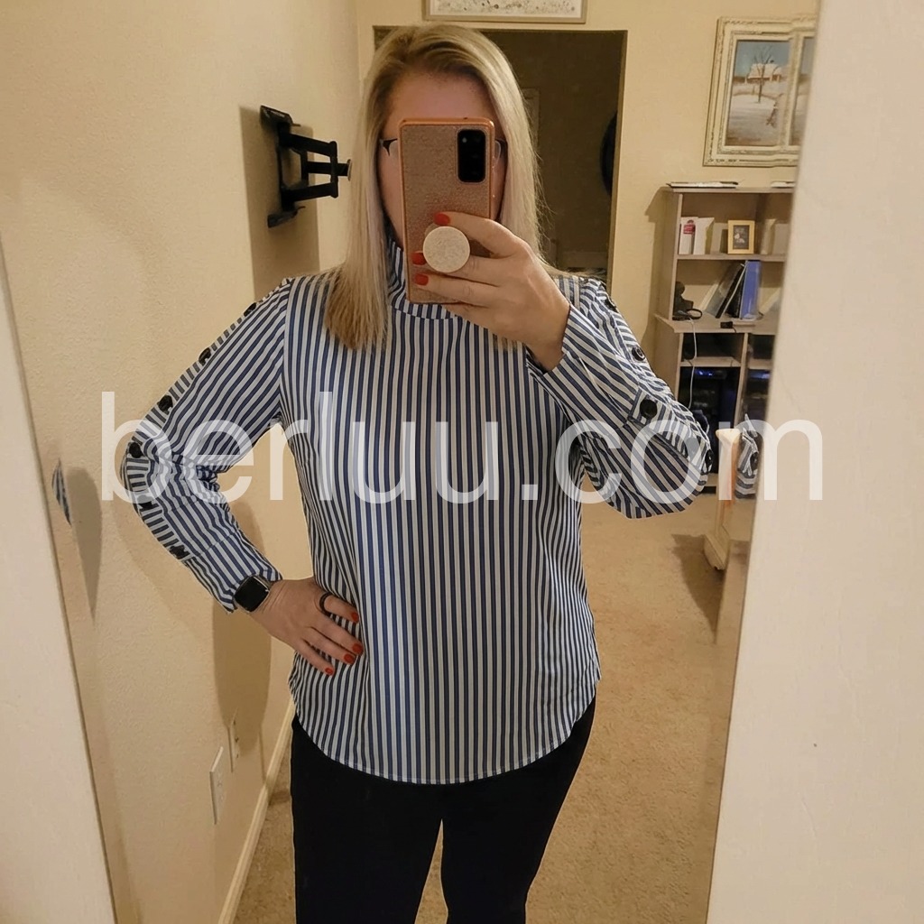 This Blue Striped High Neck Top is a versatile and stylish addition to any wardrobe. Made with high-quality fabric and featuring a flattering high neck design, this top is perfect for both casual and formal occasions. The classic blue stripes add a pop of color and sophistication to any outfit.