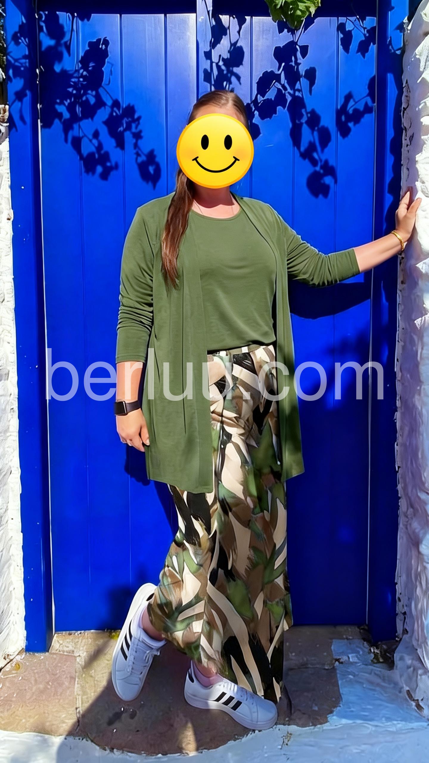 This three-piece set features a solid green top, matching open-front cardigan, and wide-leg pants with a bold tropical leaf print. The relaxed silhouette offers comfort and style. Perfect for casual outings or warm-weather wear. Lightweight fabric ideal for everyday elegance. Effortlessly chic and easy to wear.