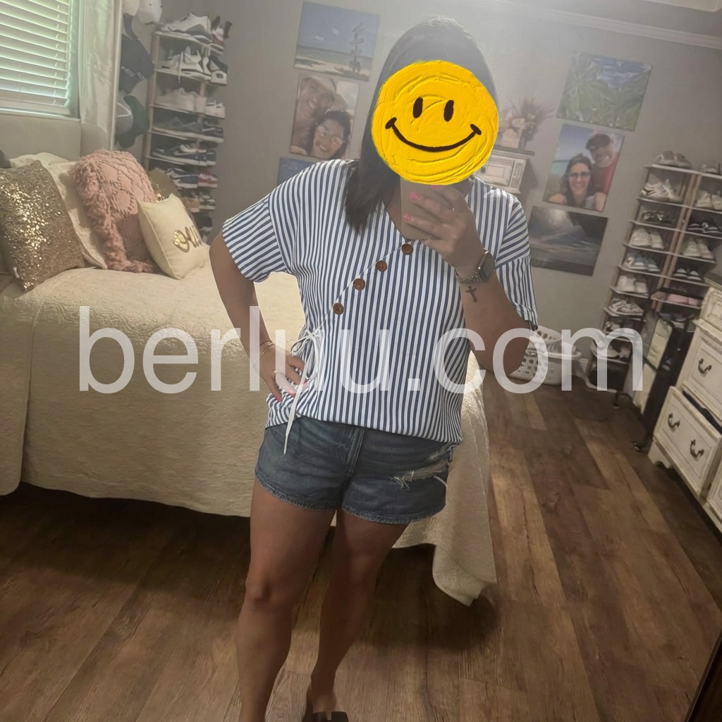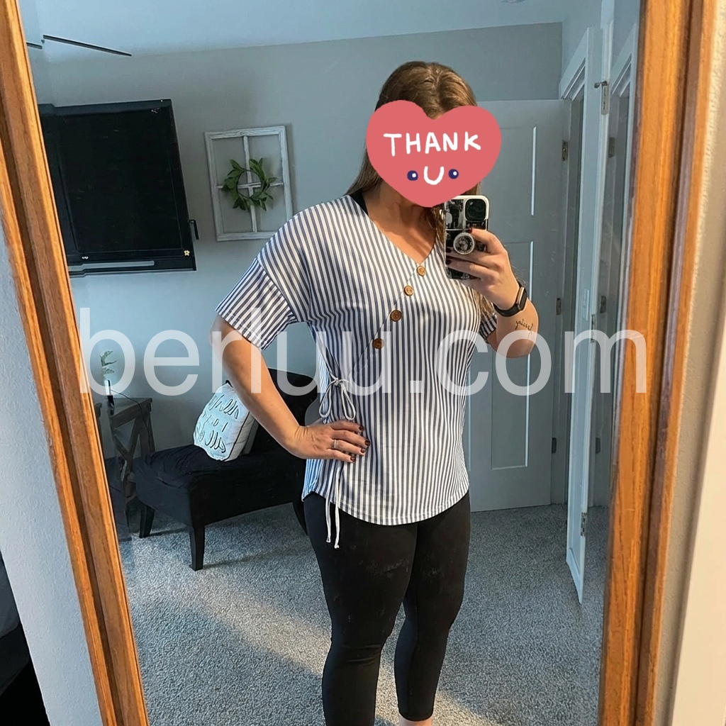 The V-neck, wooden buttons, and adjustable tie cinch the waist beautifully, while the flowy fabric keeps you comfortable.