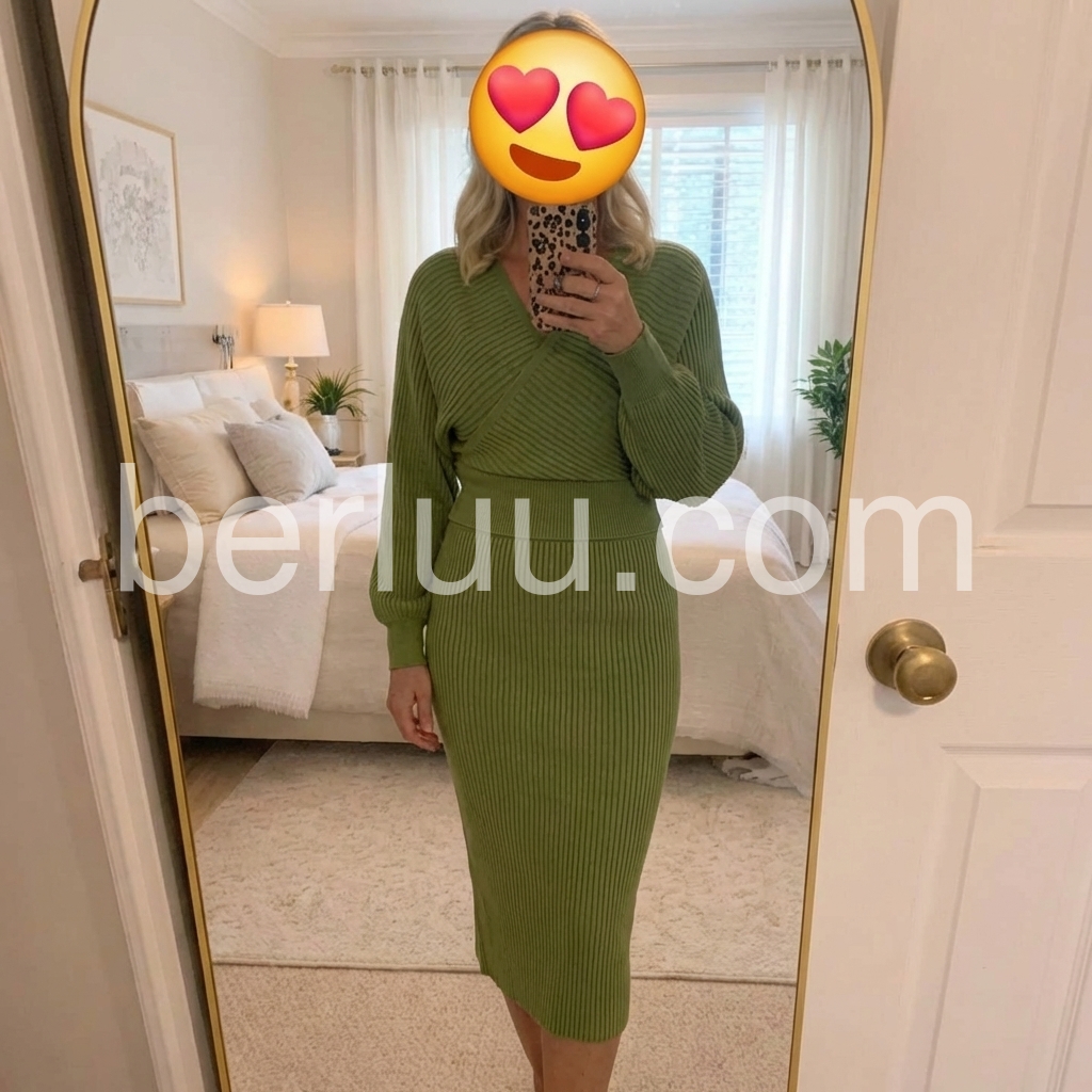 Upgrade your winter wardrobe with our Green Long Sleeve Plain Midi Sweater Dress. The stylish midi length and comfortable long sleeves make it perfect for any occasion. Stay warm and fashionable with this versatile piece.