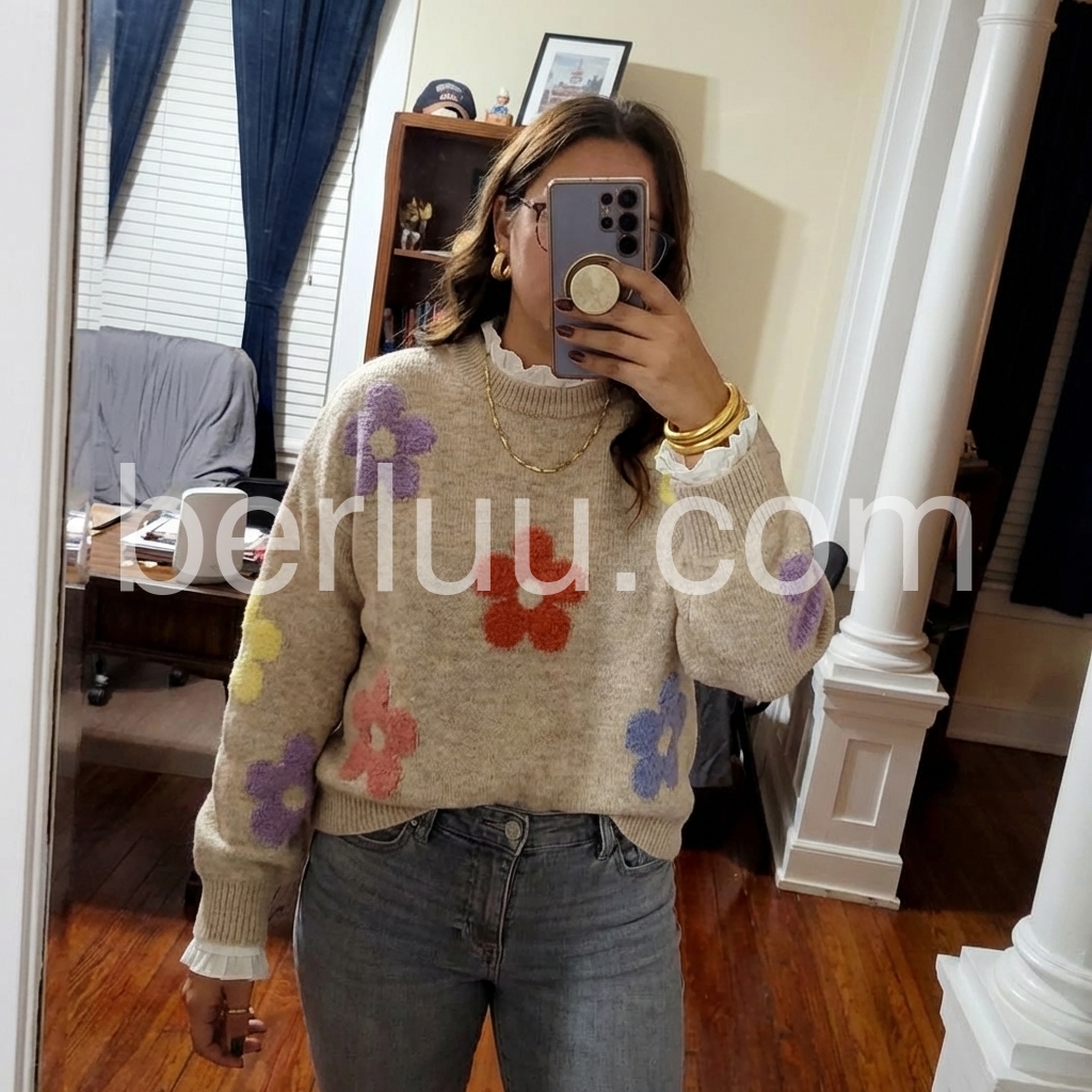 Elegant Apricot Round Neck Sweater