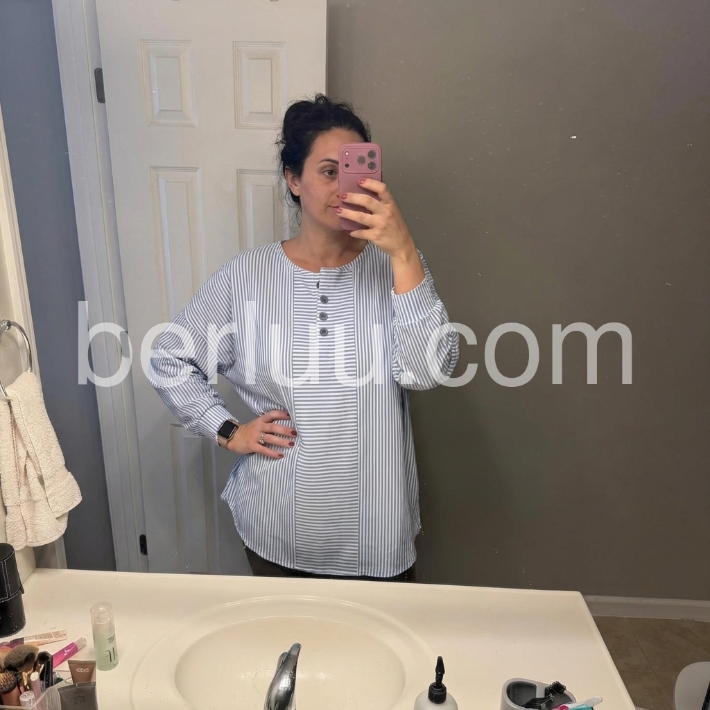 This long-sleeve top features a clean blue-and-white vertical stripe pattern with a buttoned placket. The relaxed fit and wide sleeves offer comfort and ease. Soft fabric perfect for casual wear. Ideal for pairing with jeans or pants. Simple, modern, and effortlessly chic.